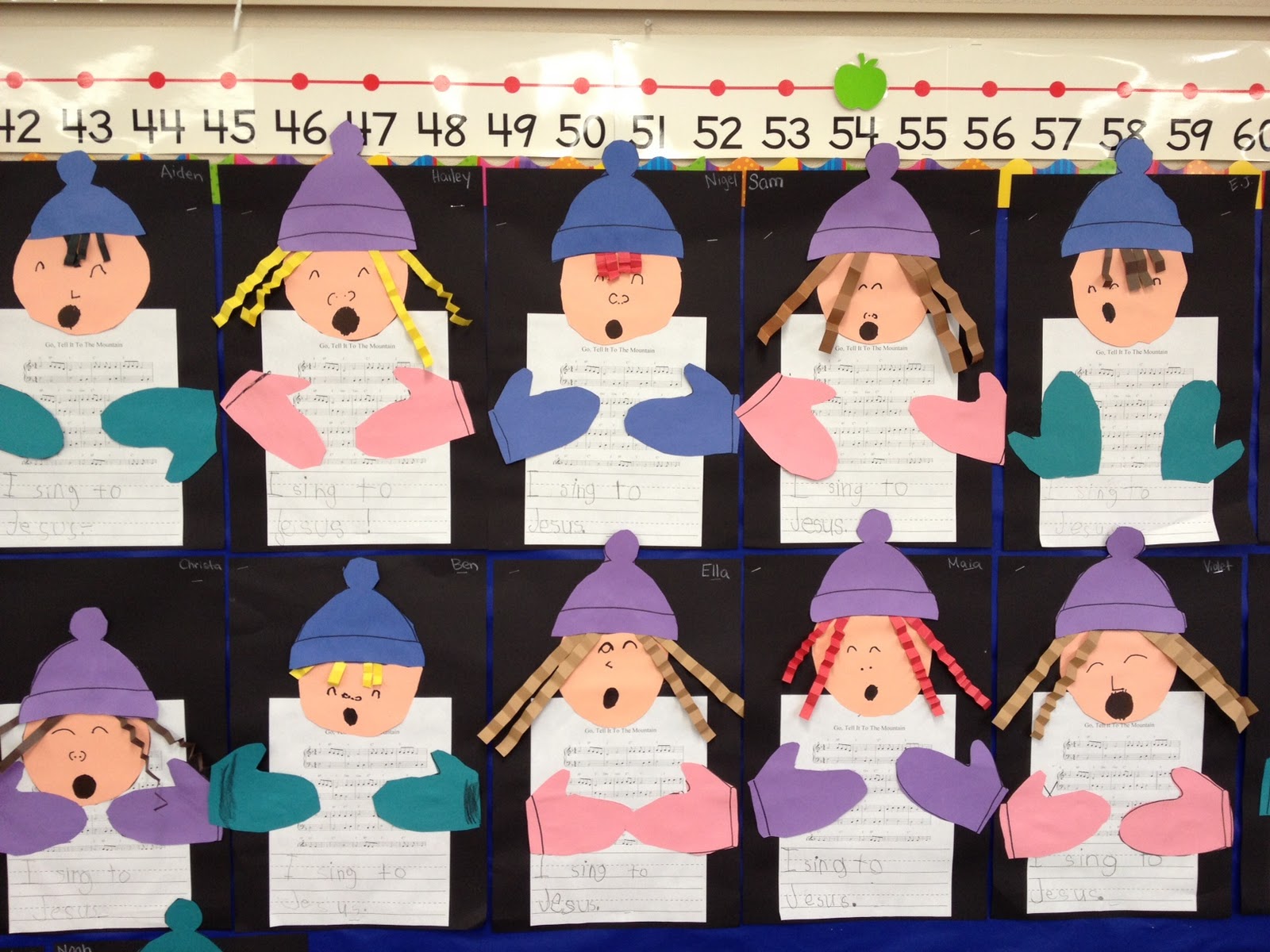 I found this adorable caroler idea on Pinterest. Our class sang “Go Tell it on the Mountain” for our Christmas Program (which was adorable, by the way!!) so we discussed the meaning of singing songs to Jesus during Christmas time. Each child got to choose the color he/she wanted for the mittens and hat, and we chose the same color paper to match each student’s hair color. This might be my favorite project yet. Of course, we added a sentence to tie it all into our writing standards.