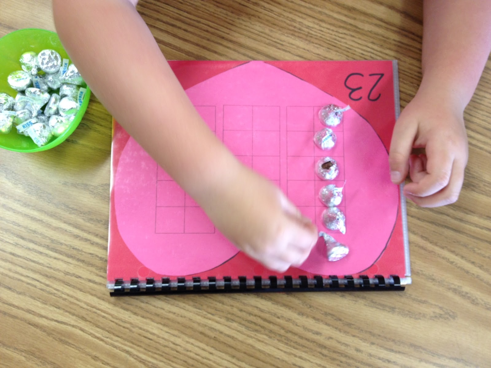 I created a work mat where the students could flip through and count out the same number of kisses. I used this project during center time.