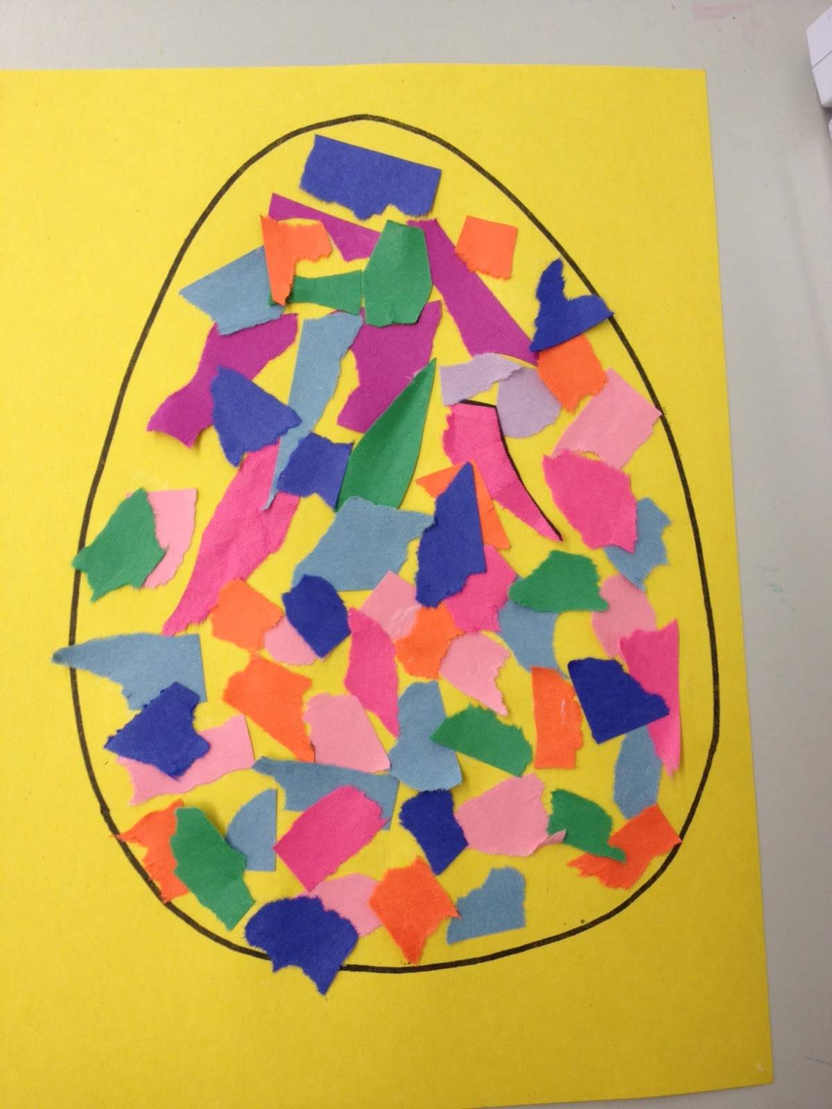Our recycling bin was getting full, so I decided to use the scraps of construction paper to decorate an Easter egg. I accidentally made too many copies of the Easter egg for a different project, so we used all of the paper to prep us for talking about Earth Day when we get back from Spring Break.