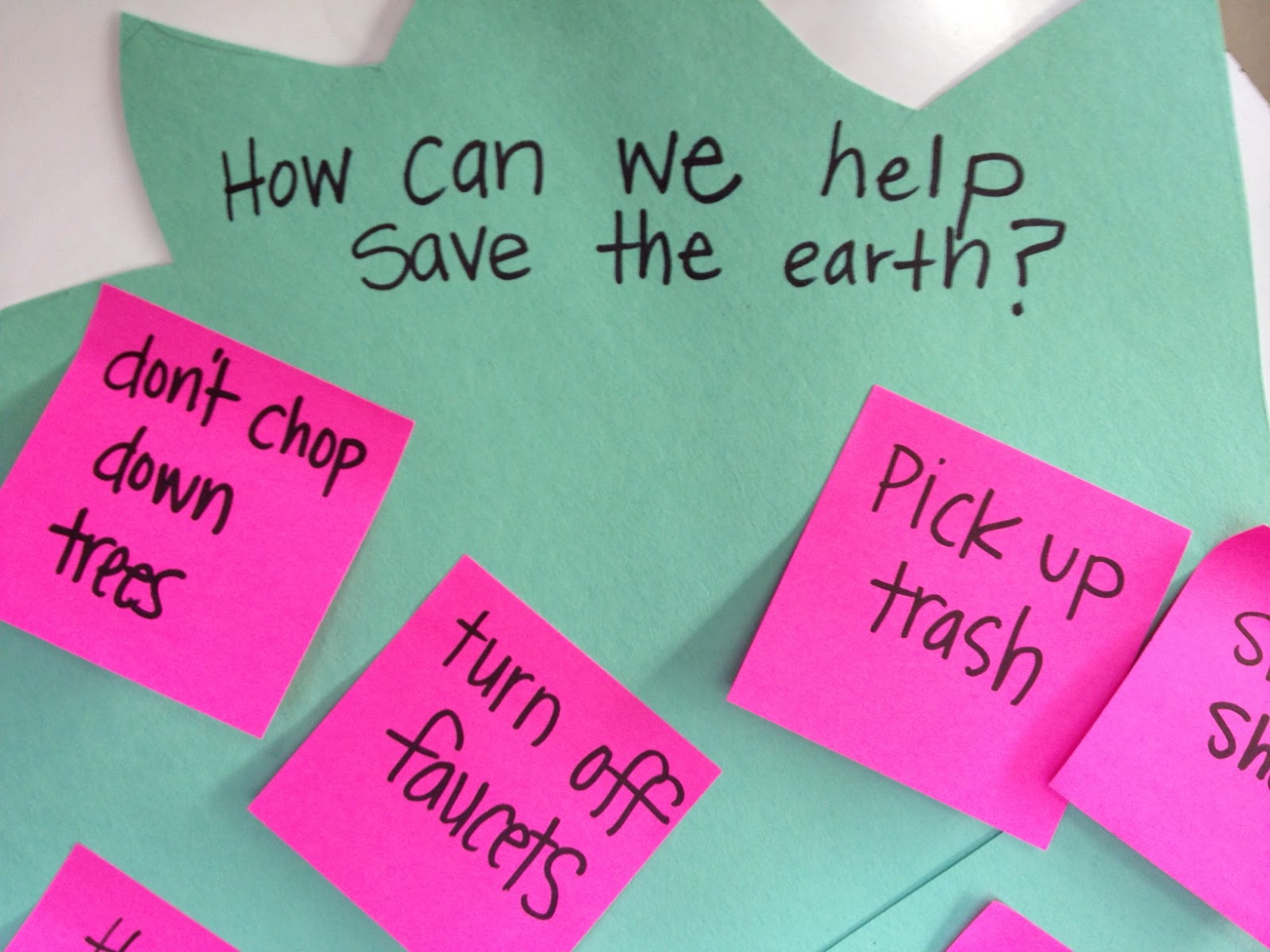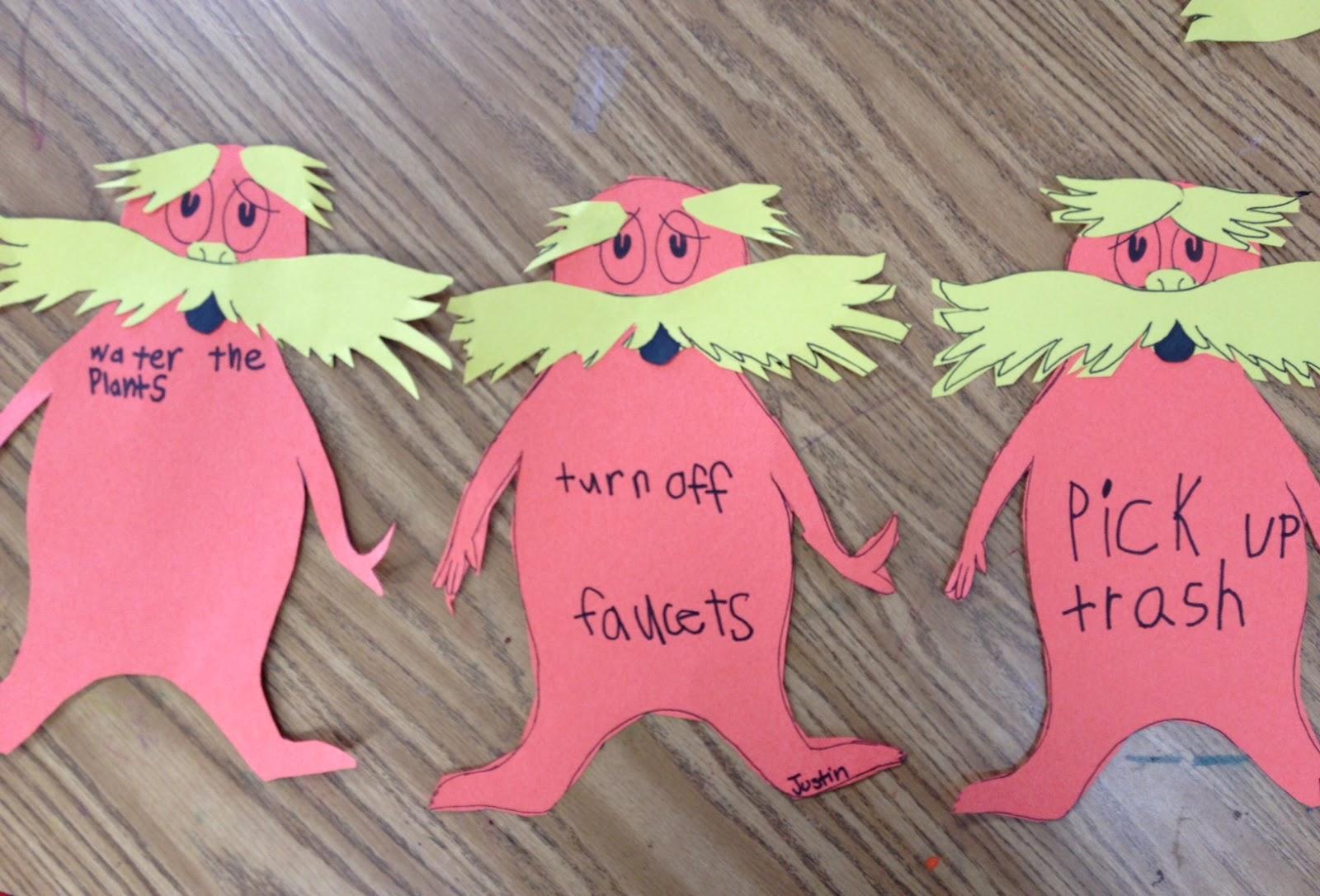 I made a Truffula tree as a graphic organizer (instead of a circle map) for the children to tell me ways we can help our earth. I wrote their ideas on a post it note, and I placed it on the Truffula tree.