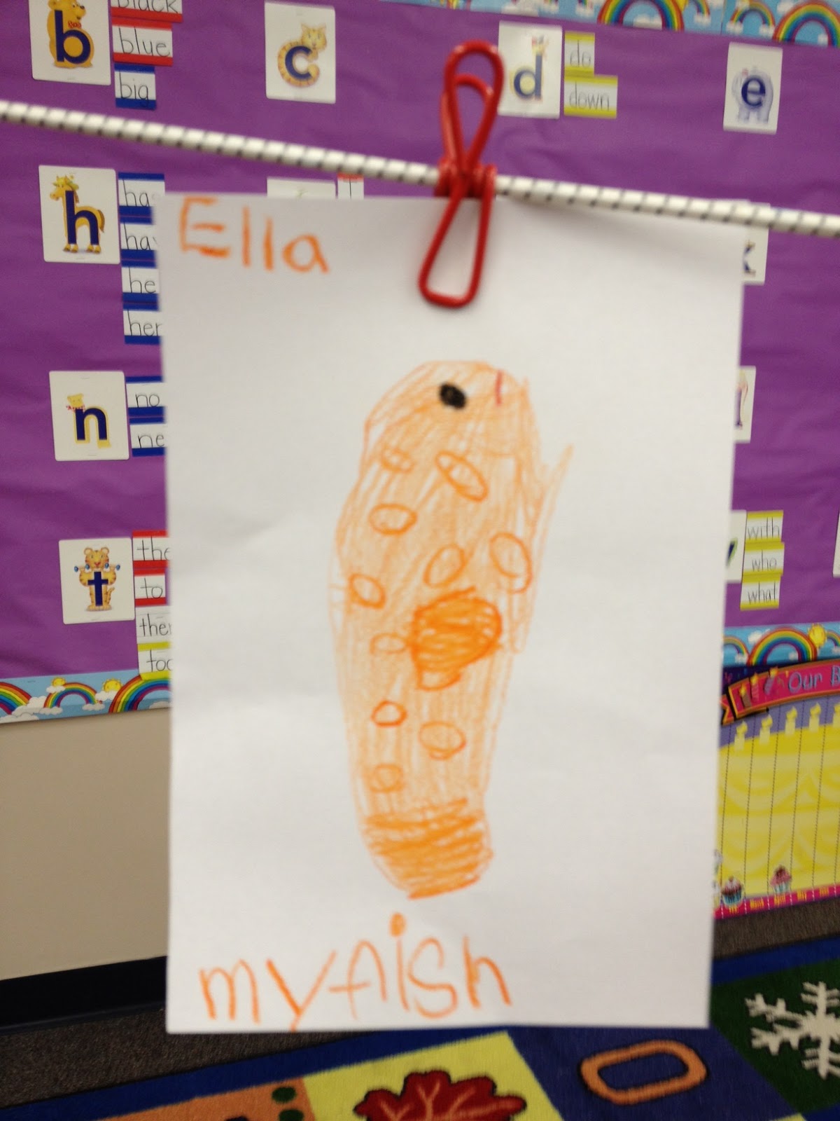 The kids laugh and laugh as she hangs up the silly things (and this is when I have a “teachable moment” about appropriate volume and length of laughing in class..)