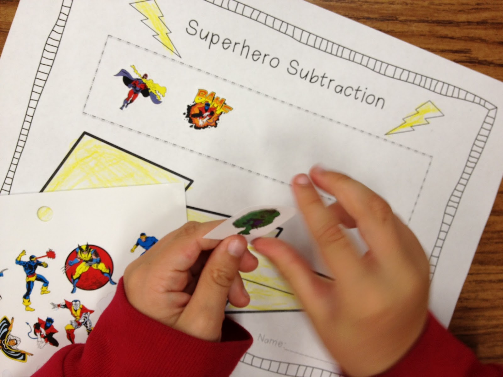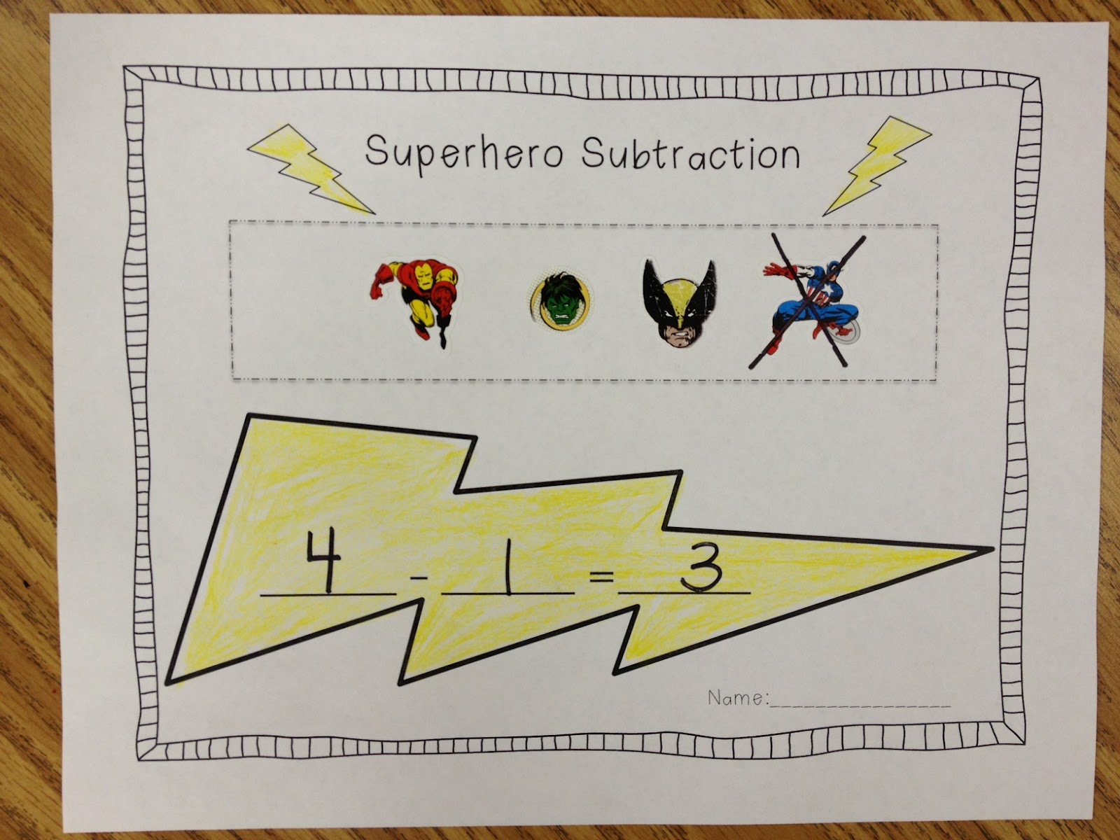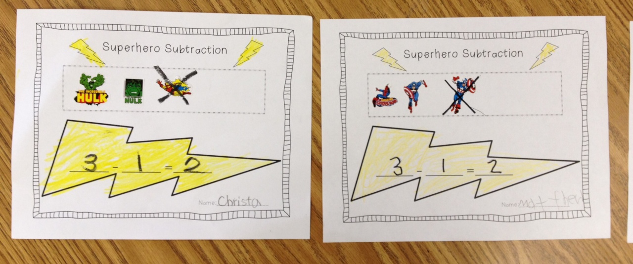 I was frequenting Michael’s that I LOVE so very much and I found some superhero goodies in the dollar bin! My students have been talking about superheroes because of the new Avengers movie that is out, so I decided to tap into their excitement and transition it into subtraction and building words!