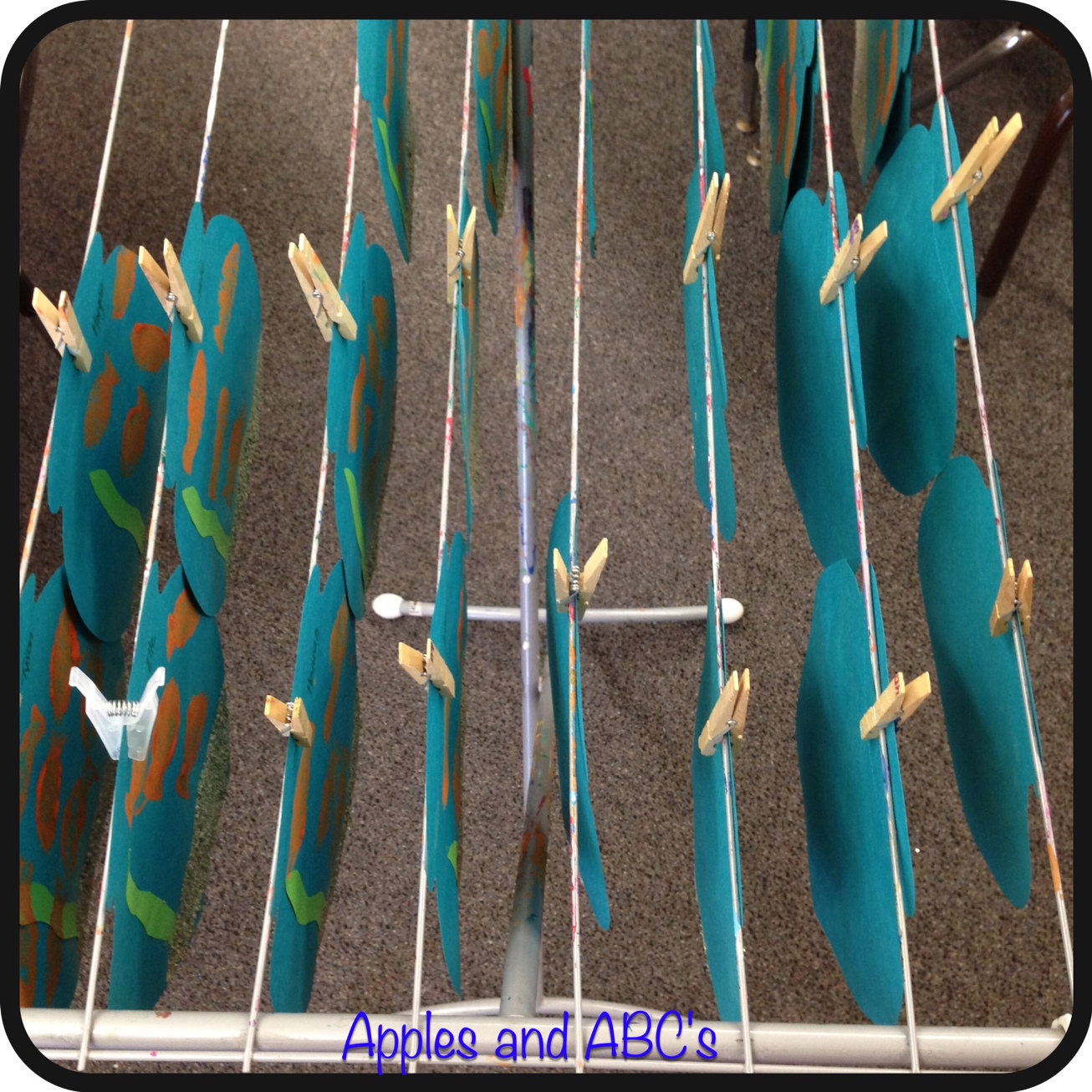 Good idea! We lay our painted stuff along the long walls in our hallway… needless to say, when the holidays come around or some special event that requires kiddo-painted projects and decorations, the kinder hallway is like a minefield of projects! Haha!