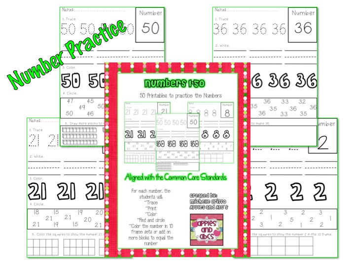 This is probably one of the main set of printables that I use, all year long. Numbers 1-50 is a pack designed to focus on one number at a time. The students have multiple tasks to do on each page, and after showing them what to do once, they can complete the rest of them independently. I use these for centers, homework, and to introduce each number. This pack is available as a bundled set, or sold separately. Click HERE to see the details!