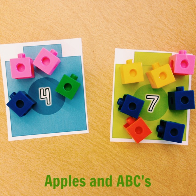 This is a fun activity to have the kids practice their counting. They grab a cube mat, look at the number, and count that many blocks.