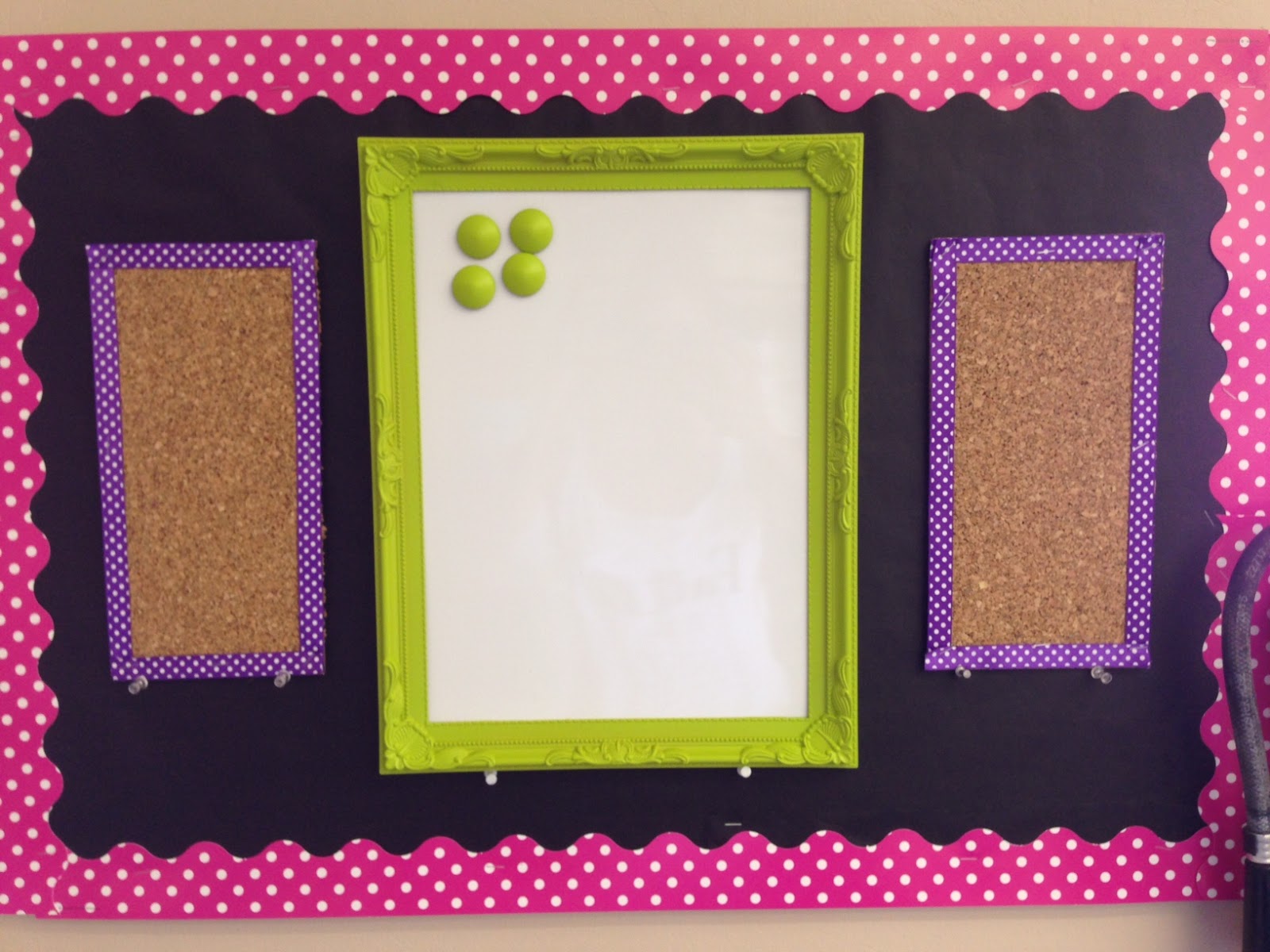 This a small bulletin board in the back of the room that has notes and details for the parents.