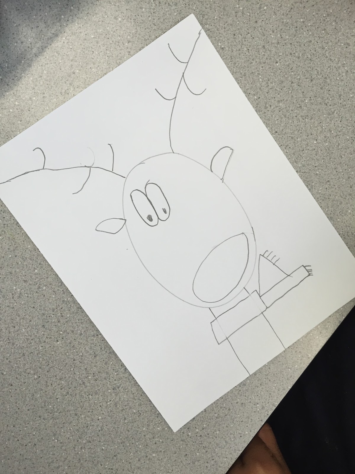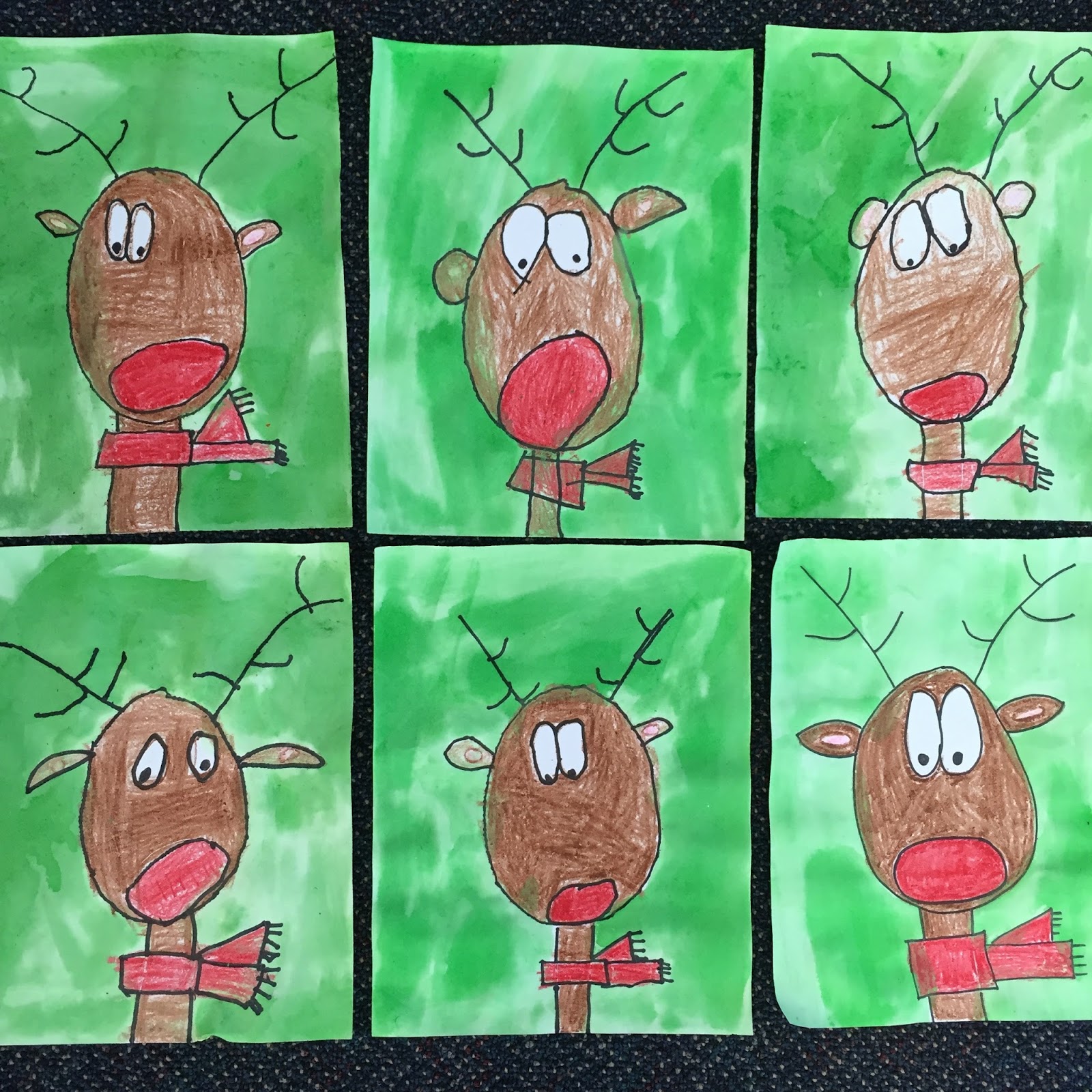 I finally caved and made the reindeer portraits by ARTventurous! I am so glad I did because my class loved making them! We started with a directed drawing found here. The kids drew their reindeer in pencil on white construction paper first.