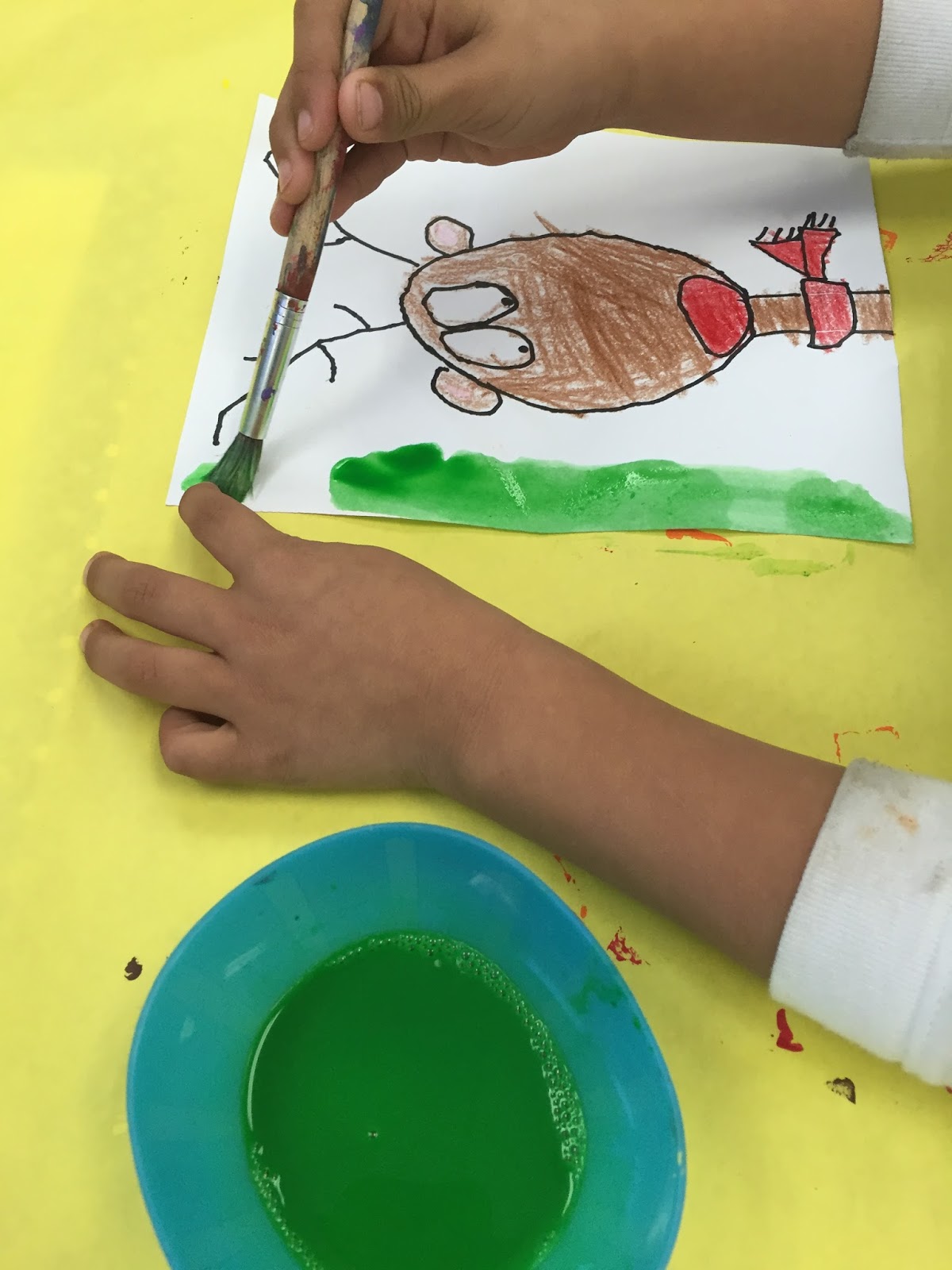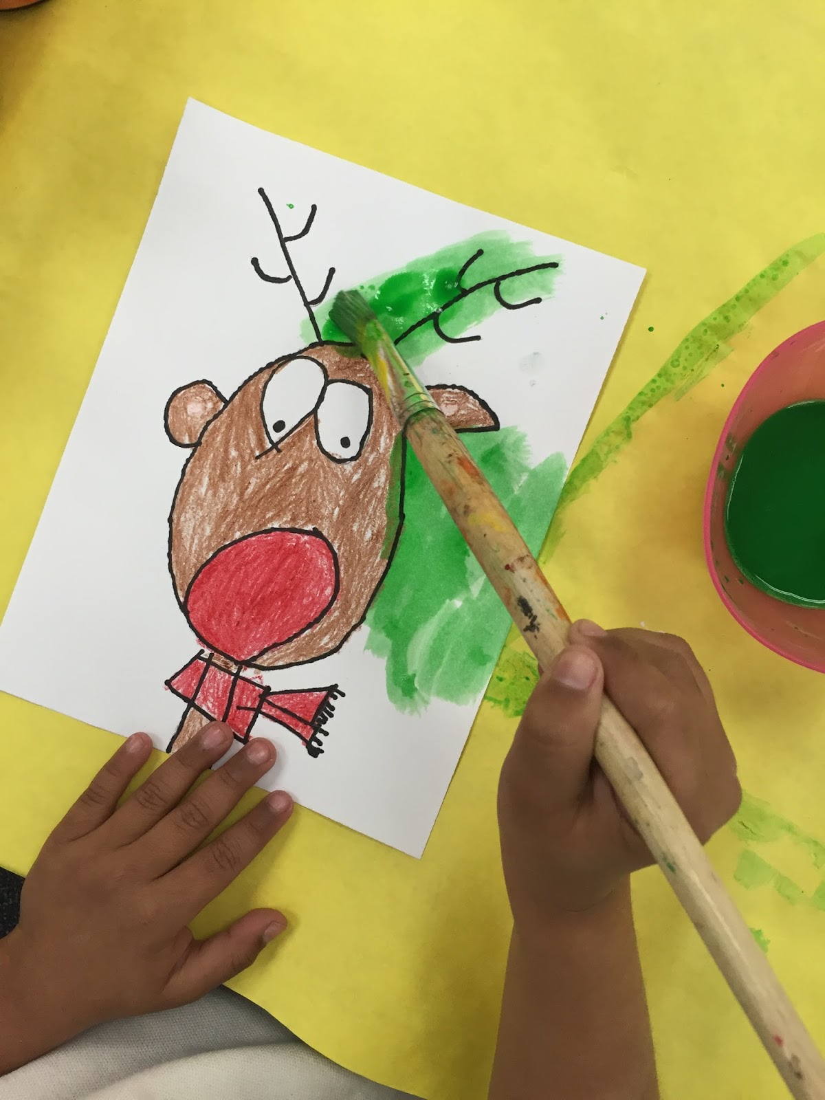 They colored their reindeer with crayons, and the I made my own green water color. I mixed yellow and green paint and added alot of water!