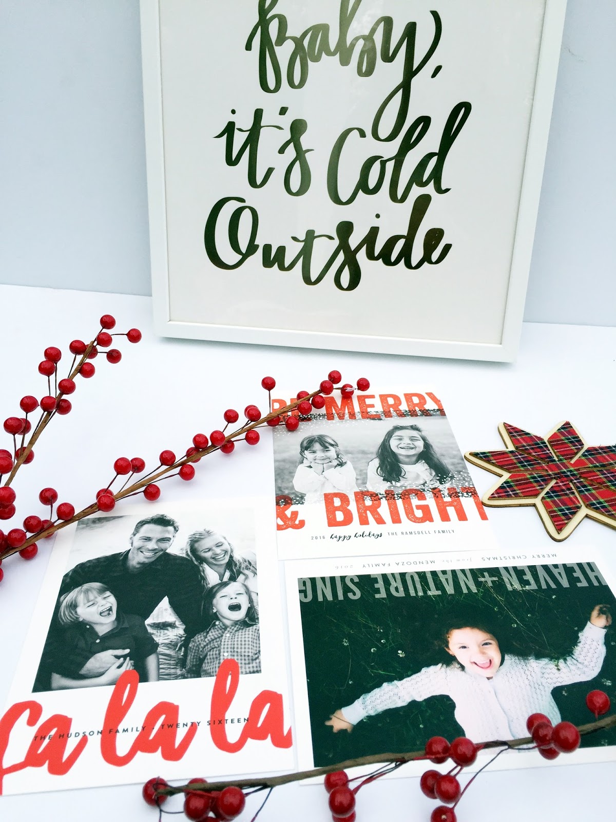 This year I am partnering with Minted to showcase some of their newest Christmas card designs. I narrowed down my choices down to my 3 favorite card designs. One helpful feature is you can order a sample card for $1, that way you can see the colors, quality, and style in person. I really appreciated being able to hold the different cards in my hands to better pick a card! (You can’t personalized the card, they just send you a pre-made sample.)