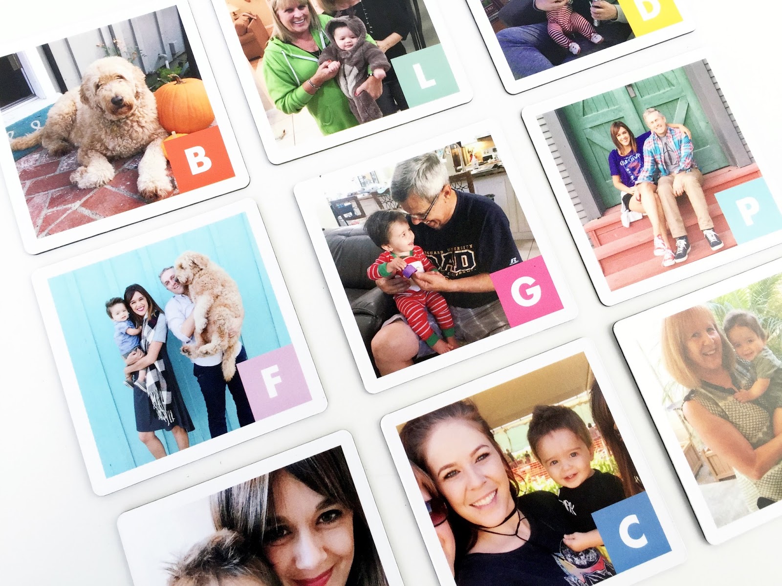 The Alphabet Magnets come with a letter in the corner, and you can personalize it with a picture. I decided to put family members on the pictures, but I also thought about taking pictures of some of his favorite things and putting those on the magnets as well (his blanket and light saber…lol).