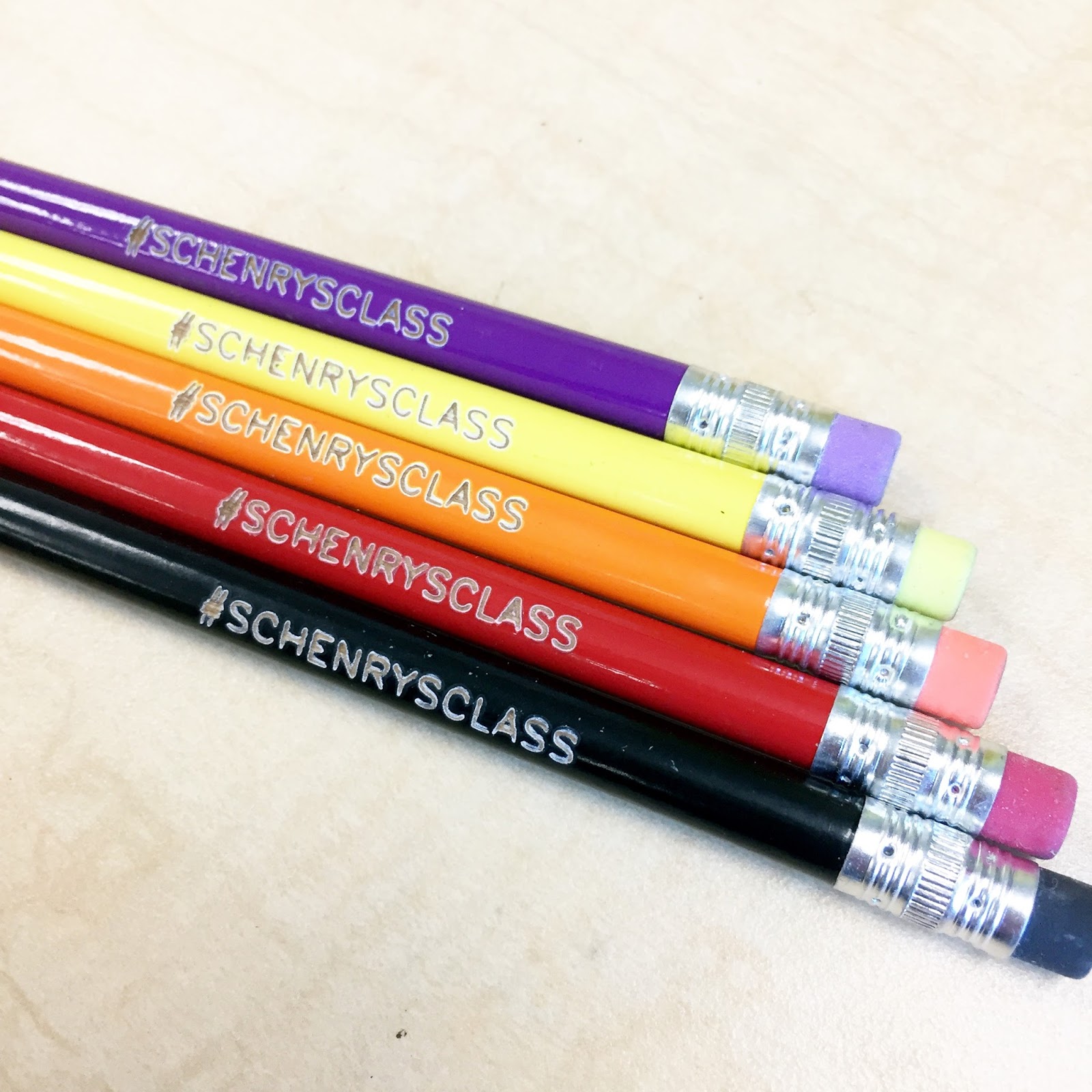 Thanks to Oriental Trading we were able to personalize pencils with #schenrysclass written on them. Oriental trading offers this service in several different assortments of color and amounts, so you can easily modify your purchase to meet your needs!