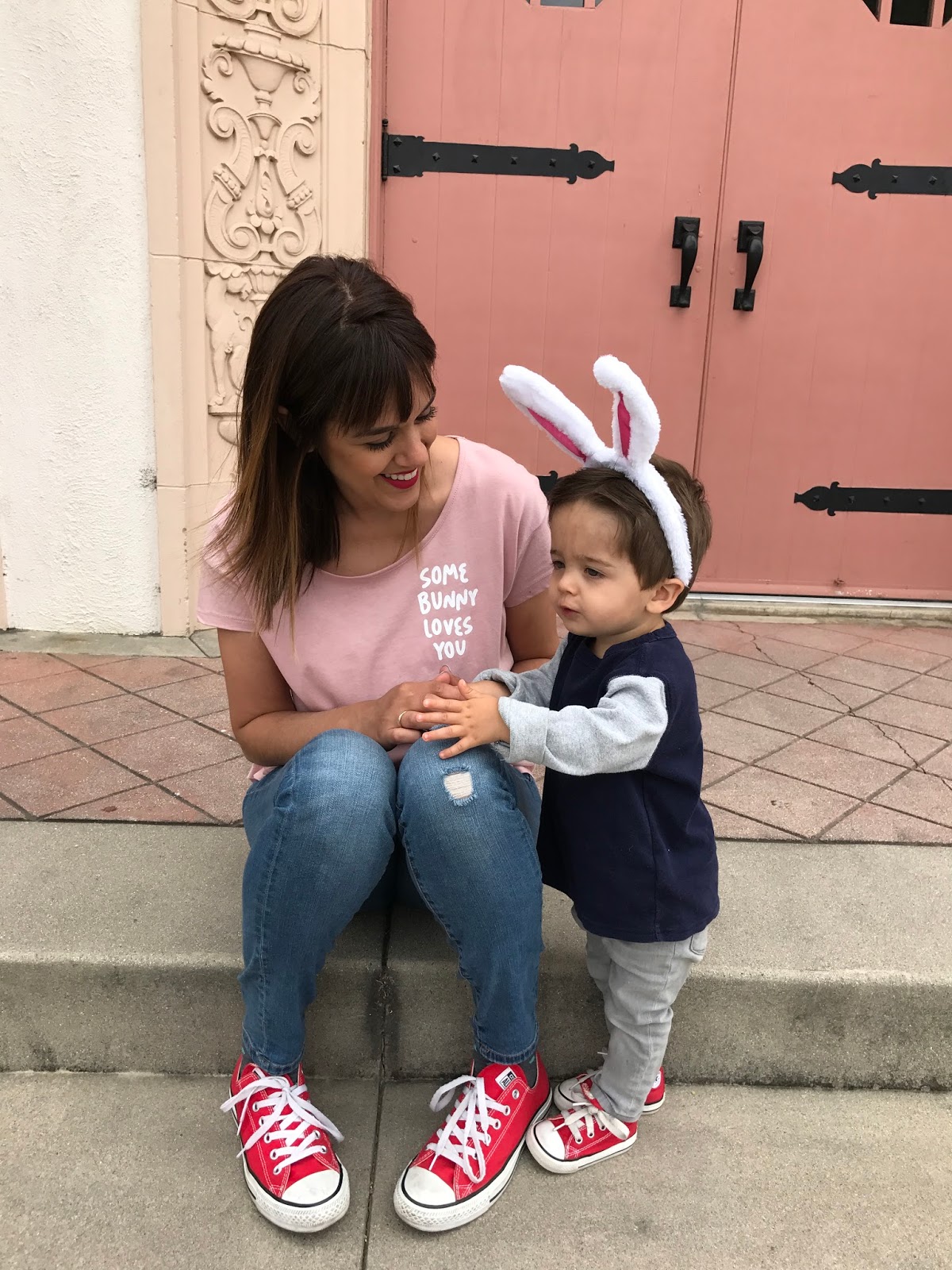 One of my favorite parts about Ily Couture is their seasonal clothes. They aren’t IN YOUR FACE, but subtle, super stylish, and the fonts and graphics are amazing. Hence my “Some 🐰Loves You” shirt! The scoop neck and color make it super feminine and you don’t even know it’s an Easter shirt until you take the time to read the text.