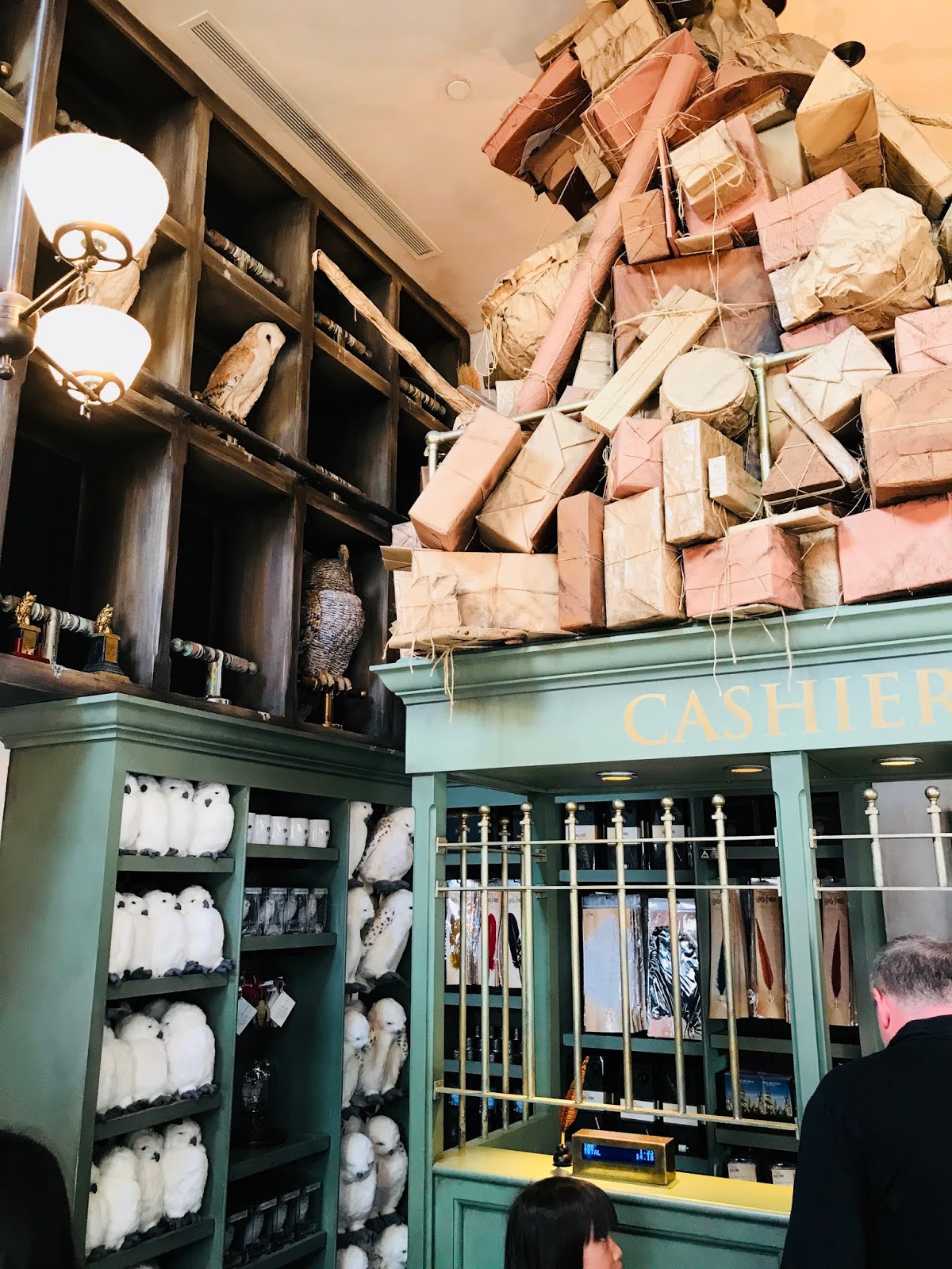 My favorite shop was Owl Post… you walk in and there are hundreds of packages stacked up in the rafters and dozens of mechanical owls moving their heads, ruffling their feathers and hooting! It was so magical!